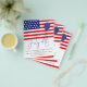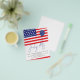 A great value PAPER (not card) alternative WITHOUT ENVELOPES at SMALLER size 4.5” x 5.6” and at a budget price. (Standard A6 envelopes are the nearest size to fit). Minimalist Red Flag Balloon 4th July BBQ Invite. Stylish American flag and balloon design for your Independence Day celebration. Easily personalise the text to your requirements which is slanted in line with the lines of the flag.
