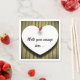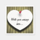A paper heart, pinned on rustic wooden panel background. Handwritten script font to personalize the products to your needs.