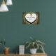 A paper heart, pinned on rustic wooden panel background. Handwritten script font to personalize the products to your needs.