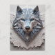 Paper is a 3D volume carving of a wolf's head. The quillwork is precise and intricate, creating a beautiful and lifelike carving. The colours are rich and vibrant, adding to the overall impact of the piece. It is an impressive and stunning work of art that is sure to impress anyone who sees it.