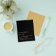 Minimal Gold Black Christmas Party A great value PAPER (not card) alternative WITHOUT ENVELOPES at SMALLER size 4.5” x 5.6” and at a budget price. (Standard A6 envelopes are the nearest size to fit). Classy black and gold with white with this fully customisable design. The header is larger in stylish lowercase with the details beneath.Easily personalise the text and can be changed to any colors of your choice via the customise further option.