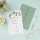 Modern Eucalyptus Wedding Program. A great value PAPER (not card) alternative and at a budget price. The main header is in a stylish set script and the rest of the text you can easily personalize. An elegant branch of eucalyptus leaves runs across the top. You can change the text and background colors if you wish to match your wedding color theme via the Customize Further option as well as other editing you may require. If you need any assistance with your editing of this design, please message me.