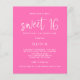 A great value PAPER not card 4.5 x 5.6" alternatives WITHOUT envelopes - standard A6 are the closest size to fit. Modern Hot Pink Sweet 16 Birthday Invitation. Minimalist typographical style for the 16th birthday party girl, with a set informal script for Sweet 16 and the rest of the text you can easily personalise.