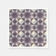 Quilt block in purple and white "spool" pattern. Eight spools rotate around a center of dark purple. A purple flower print is the "thread" on the spool. With no frame for each block, the pattern gives a kaleidoscope effect. Part of set bkmAN1a.