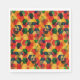 This paper napkin is shown in a basic white with a festive colorful abstract art print.