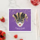 Paper napkin is shown with a festive Mardi Gras mask and gold stars.