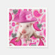 Paper Napkins, Pink Pig, Silver Hearts Napkins