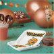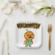 A playful design that brings Halloween vibes to the party! The paper plate features the classic Halloween symbol titled "Spooky Fun Halloween!" The center is written in a bold, intimidating font, with a fun mix of jagged and smooth letters. The plate can also have subtle patterns like candy corn for an extra festive flair.