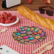 An image of colorful painted stones covers this 7" paper plate.