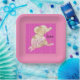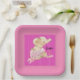 Paper plate birthday baby Elephant in pink. The name can be changed on the plate. Thanks to Creative Fabrica for some of the elements in the design.