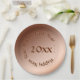 Copper background with a metallic look, with dark and light. Text is dark copper/brown with lighter drop-shadow. Personalize the year to appear within a circle of text that says "Happy New Year ... Happy New Year ... "