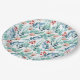 Paper Plate for baby shower, decorated with adorable watercolor plant images with soft pastel emerald and blue leaves, branches and soft pink flowers.