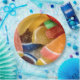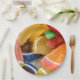 The image of colorful Jellied Fruit Slices cover these paper plates.