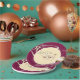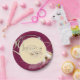 Party paper plate shown in a lovely champagne and cassis color with a love swans print design.