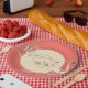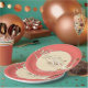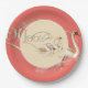 Party paper plate shown in a lovely Coral and champagne color with a love swans print design.
