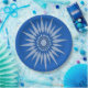 Star created in a graphic pattern of intersecting triangles, creating a 24 pointed star with multiple rows of diamond shapes in center. Default background color is a dark blue and may be changed. The design is created with a 10% opacity effect.