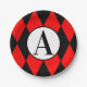 Paper Plates 7" RED & BLACK HARLEQUIN & INITIAL