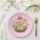 Party paper plate is shown in pink with a cute Easter basket print.