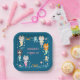 Nautical themed birthday party plates decorated with cute mermaid kittens.