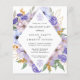 Beautiful dusty purple and blue flowers create a diamond frame to surround your engagement party details. Open gold flowers and leaves give the design a luxe vibe.