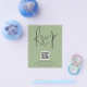 QR Code Script Wedding Sage RSVP. A great value PAPER (not card) alternative at size 4.5” x 5.6” and at a budget price. A stylish set typography in black for the main heading RSVP complementing the rest of the text which you can easily personalise.