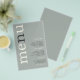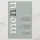 Paper Simple Sage Ivory Typography Wedding Menu. A great value PAPER (not card) alternative at a budget price. A modern typographical design with Menu in large typography in Ivory with the ”n” in gray, rotated and to the left hand side on a background of light sage green. Background color on each side can be changed if you wish via Customize further.