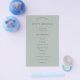 Simple Soft Silvery Green Wedding Program. A great value PAPER (not card) alternative 5.5” x 8.5” at a budget price. A stylish typographical design with black text on light sage green for your wedding programs which is fully customisable. The text, which you can easily personalise, is centered on both sides. You can change the text and background colors if you wish to match your wedding color theme via the Customize Further option as well as other editing you may require. If you need any assistance with your editing of this design, please message me.