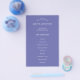 Simple Text Blue Wedding Program. A great value PAPER (not card) alternative WITHOUT ENVELOPES and at a budget price. A simple, stylish typographical design with black text on periwinkle blue violet for your wedding programs which is fully customisable. The text, which you can easily personalise, is centered on both sides. You can change the text and background colors if you wish to match your wedding color theme via the Customize Further option as well as other editing you may require. If you need any assistance with your editing of this design, please message me.