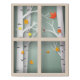 Papercut-look window with Aspen trees and falling autumn leaves.