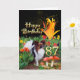 Papillion dog breed Happy 87 Birthday card with monarch butterfly in a magic garden of tulips red mushrooms lady bug. This design is an inspiration to celebrate the colorful brightness on the beautiful tulip garden.
