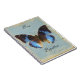 A beautiful shabby chic image of a blue butterfly, on a blue background with vintage french script. ©Wickedlylovely