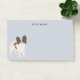 Papillon Cartoon Dog in white and dark brown. Set on solid icy blue background.