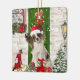 Papillon Dog Christmas sitting outside decorated home with Christmas wreath, Christmas tree is a perfect Christmas gift idea for dog lovers.