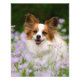 A White and Red Papillon dog sitting in a meadow surrounded by Cuckooflower. The Papillon is an alert, friendly and very smart toy breed. A little lovely doggy photo taken by Katho Menden, this animal photo on a photo paper poster is an enchanting special gift idea for dog lovers.