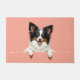 The soft pastel coral background adds a warm and cheerful touch, perfect for welcoming entryways. Designed with extra space at the top and bottom, it allows easy personalization with names, welcome messages, or custom text—making it ideal for unique dog-themed doormats and thoughtful gifts.