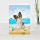 A papillon dog sitting on beach is a perfect gift idea for someone who love this dog breed.