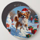 A cheerful Papillon runs through the snowy winter scene, wearing a festive red Christmas hat. With its butterfly-like ears and lively personality, this design captures the playful charm of the breed while celebrating the joy and spirit of the holiday season. A heartwarming and festive winter moment.