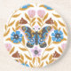 I'm not sure how much moisture these will soak up, haven't had a chance to try them out, but they look good and I like the cork backing. The printing is fine ~ and really looks cool with an artisan's hand made "Hurricane Martini" glass sitting on top of my painting (on the coaster) in my studio.