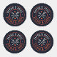 Treat a grill-loving grandpa to this this awesome coaster set for Father's Day or Grandparents' Day. A unique addition to his next bbq or cookout, this cool design for a grillmaster grandfather features a round logo with "Papou's Grill, Steaks and Chops" with illustrations of grilling tools, a flame, and a cow. Finish the design with the year established.