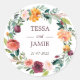 Paprika Burgundy Floral Wreath Wedding Favor Sticker designed to match out Paprika burgundy floral wedding collection featuring wedding details nestled inside an a wreath surrounded by a gorgeous palette of burgundy, gold, coral, blush and leafy greens. For further customization, please click the "customize further" link and use our design tool to modify this template.