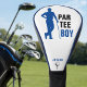 Blue and white par tee boy golf head cover for men. Great birthday or Father's day gift for a golfing dad.