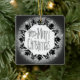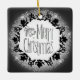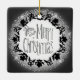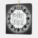 con fondo blanco y sombra negra y granos plateados rodeada con decoración negra .