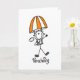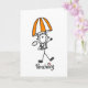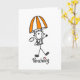 A basic stick figure parachuter is coming in for a landing with a big smile on his face and waving to all on our Parachuting T-shirts, cards, mugs, tote bags, and other Parachuting items.