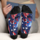 These Parade in the Sky socks bring the energy of a live summer concert straight to your wardrobe. Bold red, white, and blue balloons float across a deep navy backdrop filled with stars and curling ribbons, creating the feeling of confetti falling during the final chorus of your favorite anthem. Every detail feels like a drumbeat, every stripe like a guitar riff, and every pop of color like a note hitting the high register.