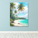 Idyllic oil painting of pristine tropical beach with tall palm trees and crystal turquoise waters. Perfect paradise art for creating peaceful, vacation-inspired spaces with natural beauty.