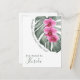 A fun design for the island lifestyle at the beach or anywhere, this vibrant moving announcement design has a watercolor Monstera leaf embellished with hot pink-fuchsia orchids. A text template is included with a funny tropical quote: "Paradise called and I said Yes!" Personalize the text template with the name of the state or country where you have moved. You can order this item with the quote as written, or personalize it with your own wording. The back side of the design has a text template for including your new address and other desired text.