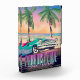 Paradise Cove , Malibu, California USA vintage style travel poster of an all American car on the beach during a sunset.