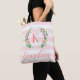 This fun trendy design features a blush pink and white striped background with colorful floral wreath. Personalize the design with your name and monogram or other text. Use the design tools to choose any background color, edit the text fonts and colors or upload your own photos to create a unique custom monogrammed tote bag.