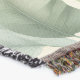 A quality printed throw has its advantages. This is a much finer weave throw than its loopier cousins, and though lighter, it is worth the investment for custom room accessorizing. The back is much prettier than the typical brown, and the fringe on the long sides very vivid, the selvage nicely done. Before photographing, I washed the throw in cold water, delicate, with a thicker woven throw the same size. On tumble dry low, this throw was dry in half the time as the other. This is a very practical quality if you use throws for furniture covers or to wrap up in frequently. The sleekness of the fabric makes it a great layer for accenting or protecting without the feeling of sitting on too much stuff. Perfect for napping or when you feel a light chill coming on. The color printing is beautiful and on this fabric, matched the design and color of my Photoshop image. This is an advantage for blending room fabrics and colors. The fringe on the short sides prints the colors from the design image and therefore varies from the side fringe. I streaked a white fractal line through the plaid pattern to give the illusion of weaving. This printed as crisp as an illusory thread, and put some white in the short side fringe, showing another advantage of print vs loomed- for artistic purposes, line lines, detail, and color integrity can be planned and preserved. My loomed throws have color limitations and more of a needlepoint texture. Print throws reproduce an exact image. The throw felt a little stiff straight out of the package, but this went away in the first delicate wash. Of course I searched the wash water for ink or bleeding and there was none.