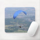 Bright blue paraglider with Clermont Ferrand in the background. The photograph was taken from the top of Puy de Dome, an extinct volcano in the Auvergne, France.